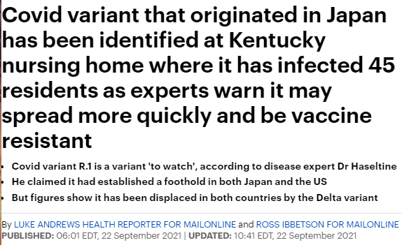 尽管感染人数相对来说还是很少的,但一位前哈佛医学院教授说,在 R.1 变异毒株中发现的新突变可以让它更容易传播。这个变异毒株中的5个变异体会导致“增加抗体的阻力。”