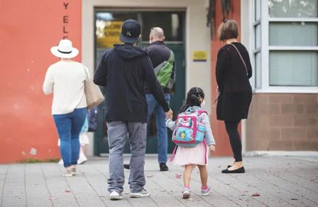 素里督学预期,其他校区都会跟随温哥华和素里,将中小学口罩令扩大实施至包括幼稚园级至3年级,图见北温一名4岁女童日前返幼稚园班。(加新社)