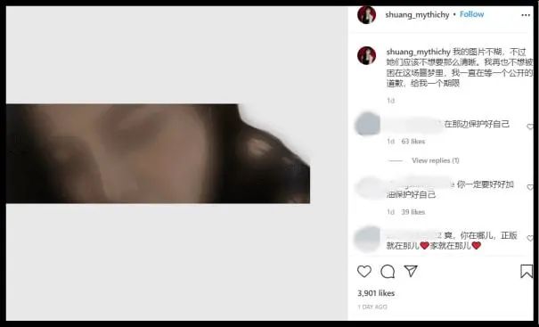 郑爽在微博被封号后,改用IG与粉丝互动。昨天(29日),她在IG晒出疑似一名女子的不雅照,表示:“我一直在等一个道歉。”