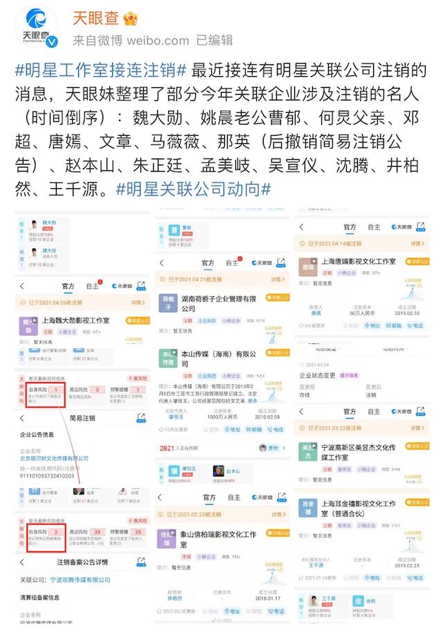 郑爽偷税事件过后,中国娱乐圈引发超级海啸,就在相关部门表示要严查之际,多个明星工作室被注销。