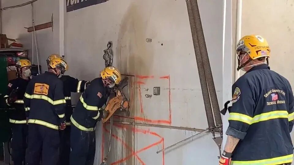 消防人员花费了接近3个小时,把墙体锯开,才将这名女子解救出来。