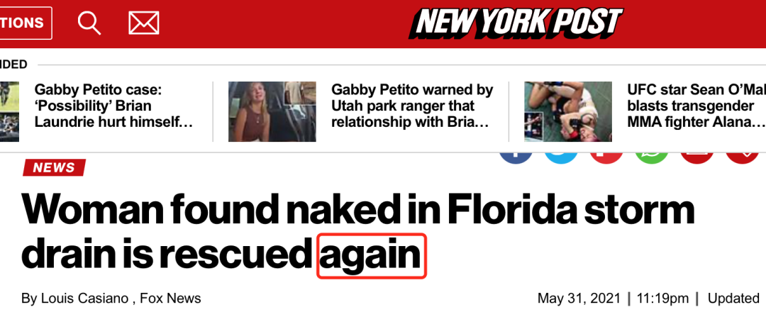 更离奇的是, 这不是第一次发生这样的事情了! 另一名女子在短短3个月内, 在下水道中以全裸的状态, 被人救了2次!