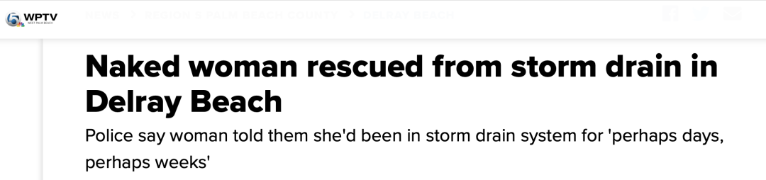 时间再往前推3个月,也就是今年的3月份,全身赤裸的Lyndsey在佛罗里达州Delray Beach的下水道中被救出。
