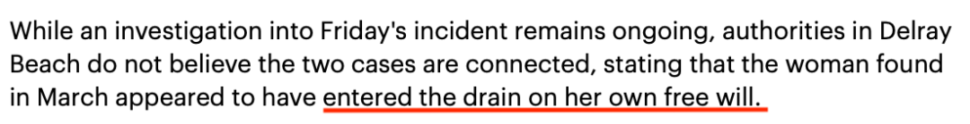 在探究Lyndsey为何会以全裸的状态进入下水道时,Lyndsey的家人说,她似乎是自己进入下水道的。