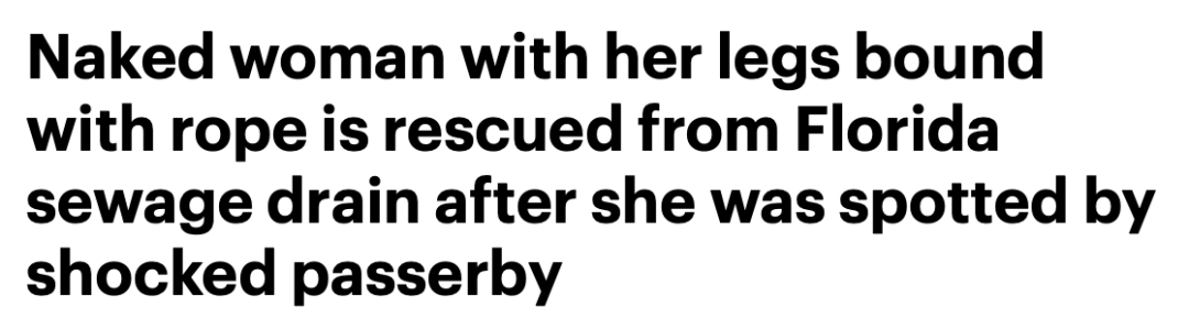 近日,美国佛州发生一起离奇的案件。 一位全身赤裸、双腿被绑的 女子竟然在下水道中被人发现!