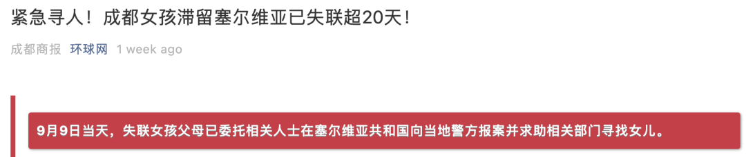 近年来,世界各地都发生过多起在年轻女子身上发生的奇怪案例。今年9月,成都女子小郑独自在塞尔维亚旅游一年后与家人失联。