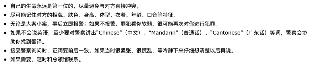 如果真的不幸遇到危险时,也请大家记住:生命永远是第一位的!必要时请第一时间报警或联系总领馆。