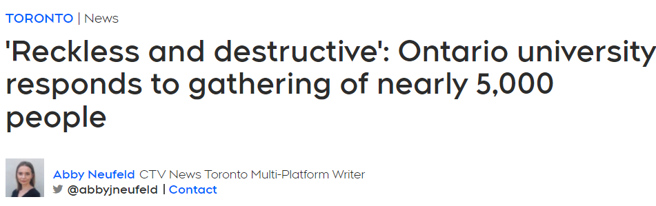 Farrar强调,麦克马斯特大学本来就决定今年不举办任何官方的返校活动,也有很多学生表示不会参加返校聚会,但还是有很多人把他们的话当作耳边风,甚至做出扰乱社会治安的行为。