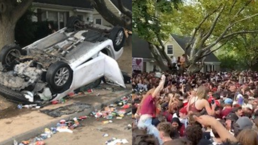安省某高校返校活动成大型破坏现场!超过5000名学生聚集在一起,向警察扔酒瓶,汽车直接被掀翻!