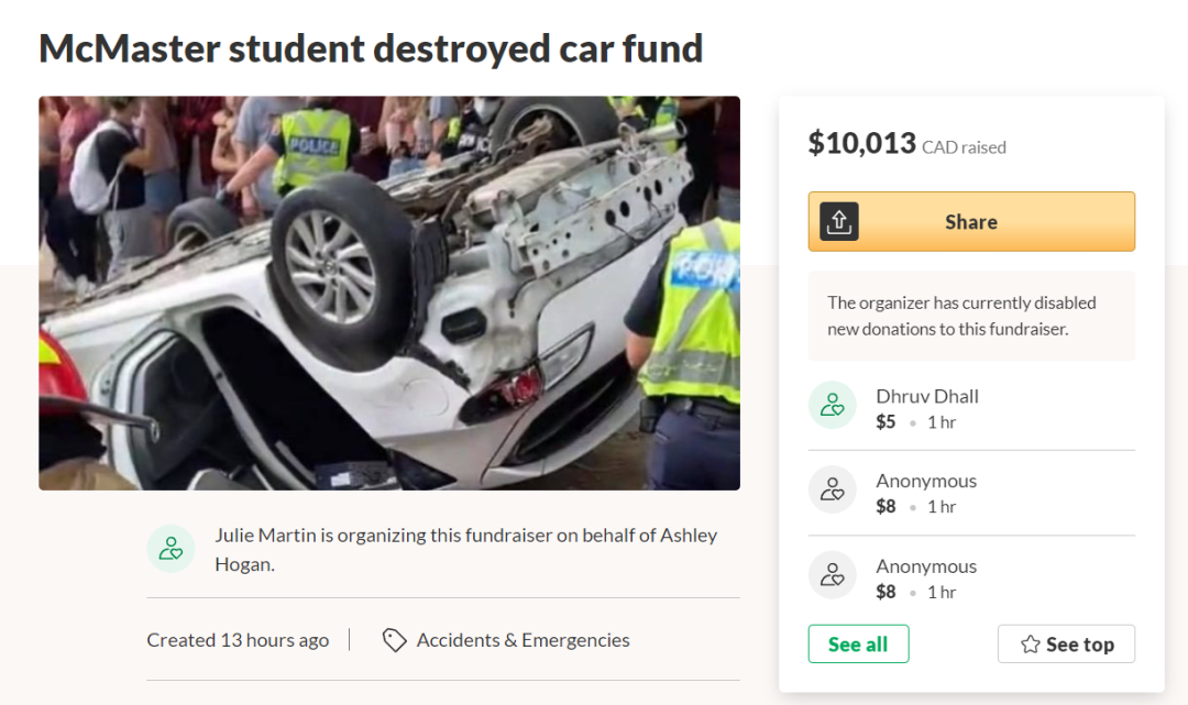 直到今天,go fund me界面已经筹得了一万多加元。