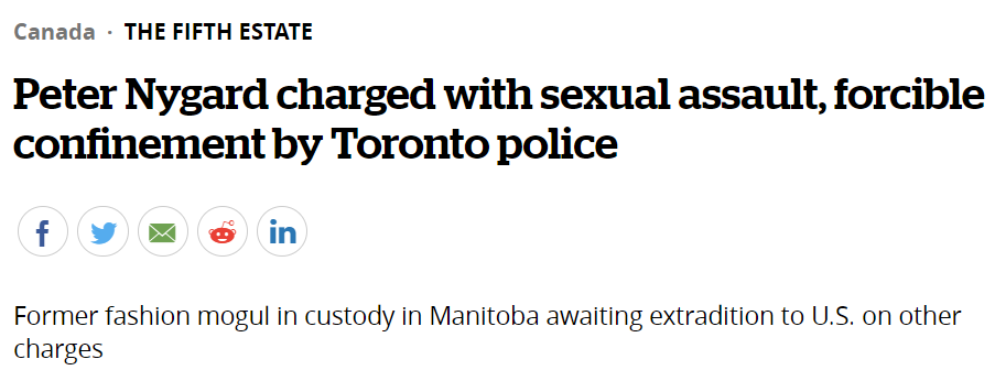 有消息称,Nygard总共面临9项指控,包括六项性侵犯和三项强制监禁,涉及6名女性,其中最小的一名才14岁。