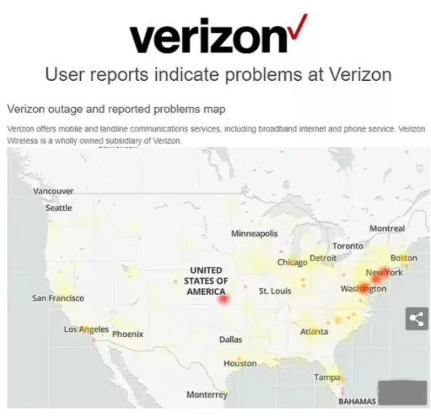 Verizon、T-Mobile和AT&T 也在中午左右也报告发生崩溃