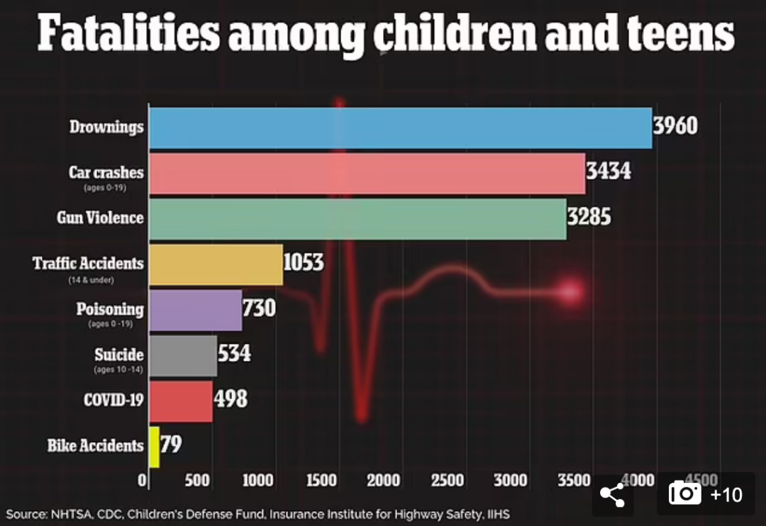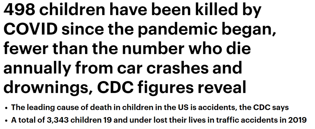 CDC首次公布的最新数据显示,从美国疫情爆发至今,共有498名儿童因新冠死亡,比每年因车祸和溺水死亡的人数要少很多......