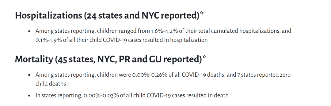 另外现有数据表明,儿童重症住院率和死亡率并不常见: