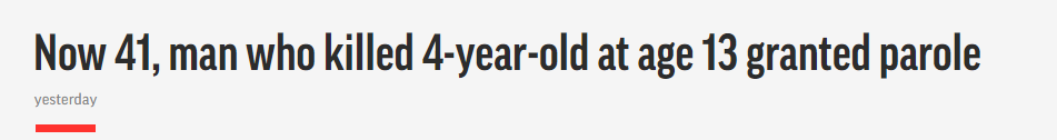 13岁时“虐杀性侵”4岁男童 被判最高刑期! 27年后,他获准...