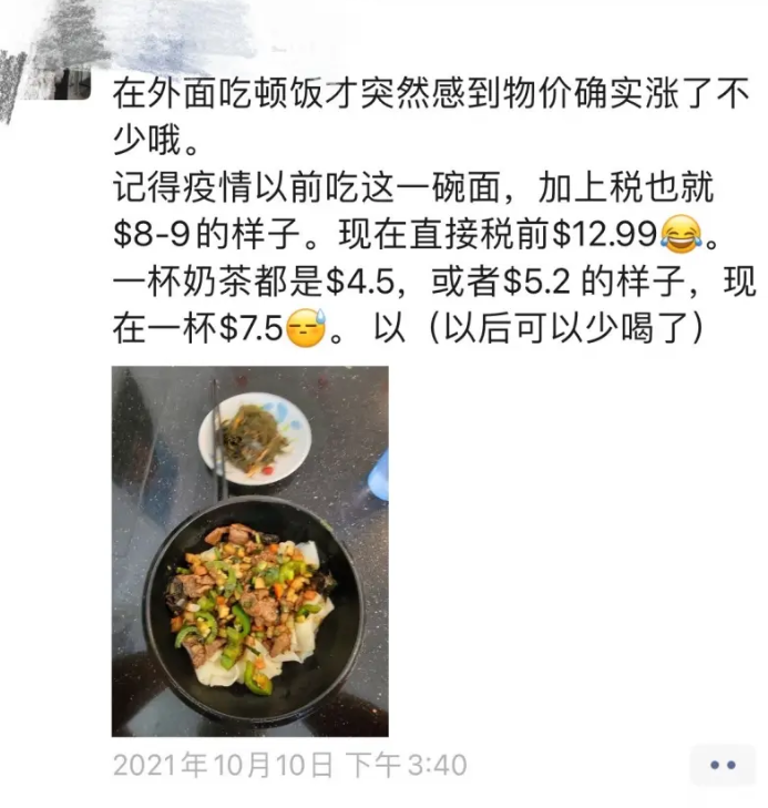 不少社交媒体平台上,都有住在美国的华人不禁感叹:这通胀、这物价,要再接着涨,恐怕饭都要吃不起了!