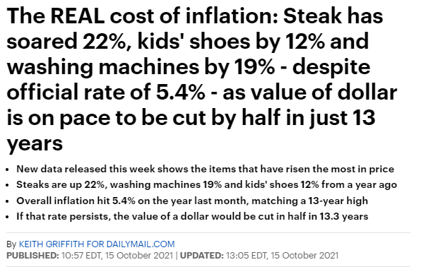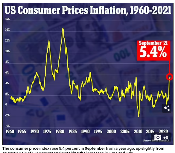 这份报告指出,9月份全国整体通胀率已经达到5.4%,与6、7月份创下了13年来最高纪录持平!