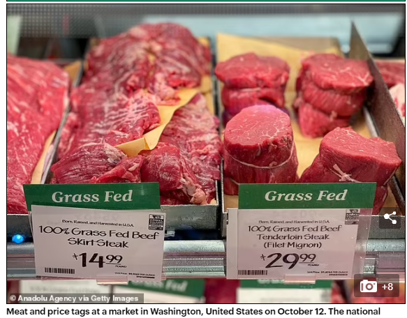 大家最喜欢的生牛排,9月份平均价格比去年同期上涨22%;一磅15刀的肉,现在18.3刀;