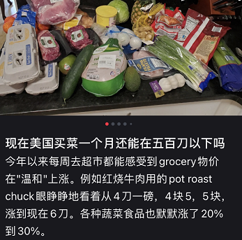 还有人跪求这物价不要再涨了,一周菜钱没有个500刀都要吃不起了!