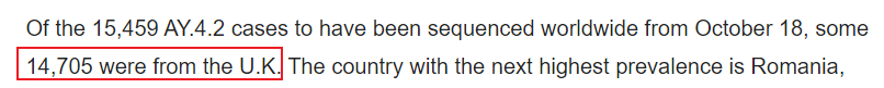 数据显示,至10月18日,全球共检测到15459例AY.4.2病例,其中有14705例来自英国,加拿大也有!