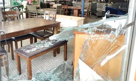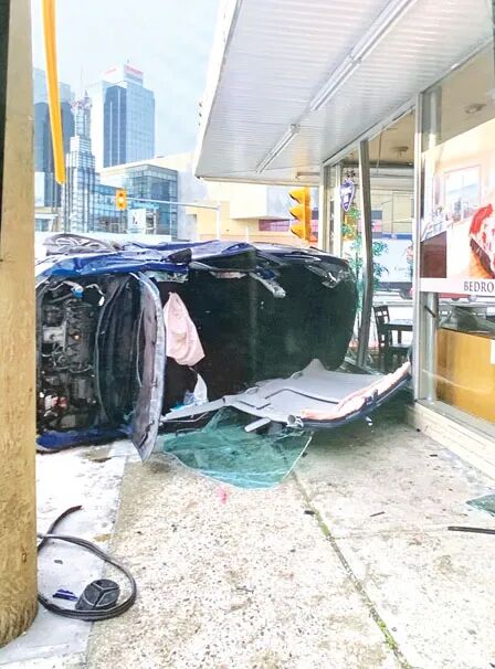 铁道镇三车相撞两人伤!房车铲行人道,破窗冲入家具店...