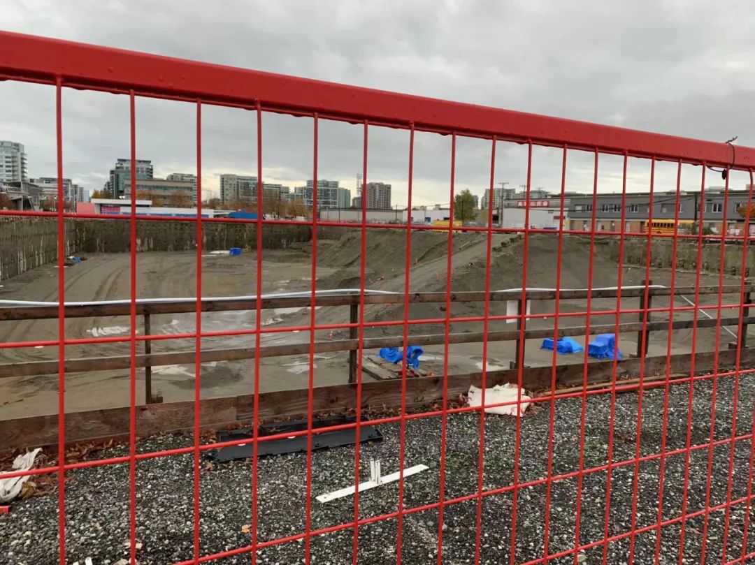 由于项目的建筑许可证已经过期,目前这块空地已经被列治文市政府用铁栅栏给围了起来。