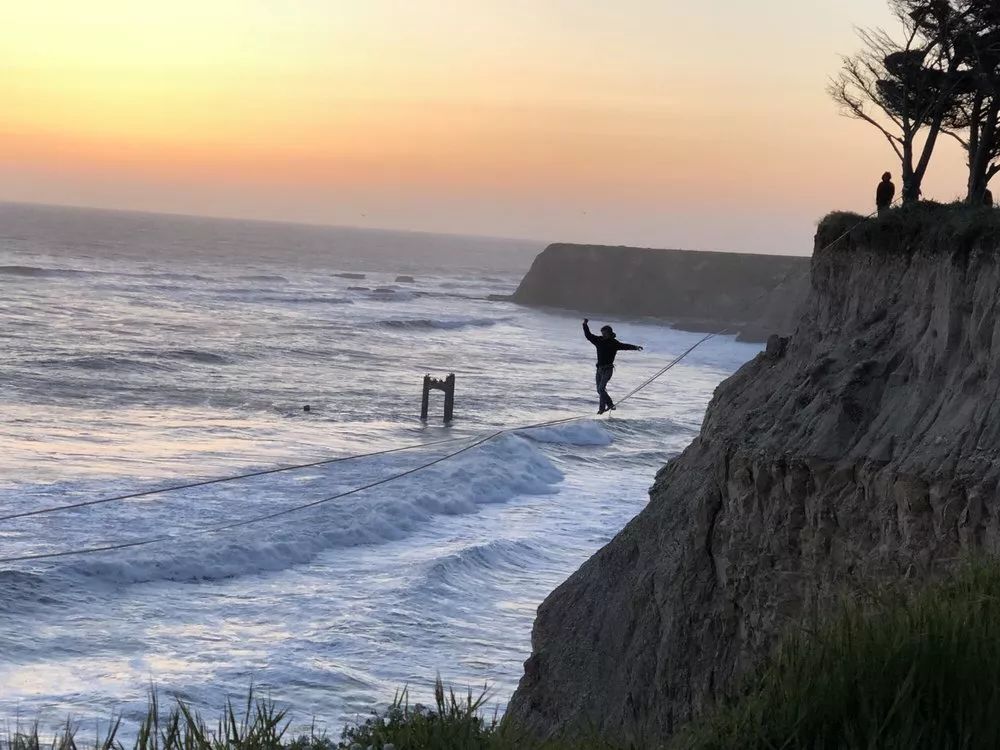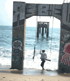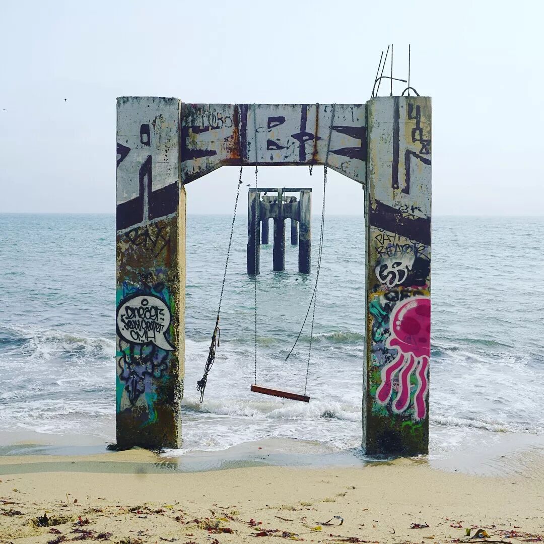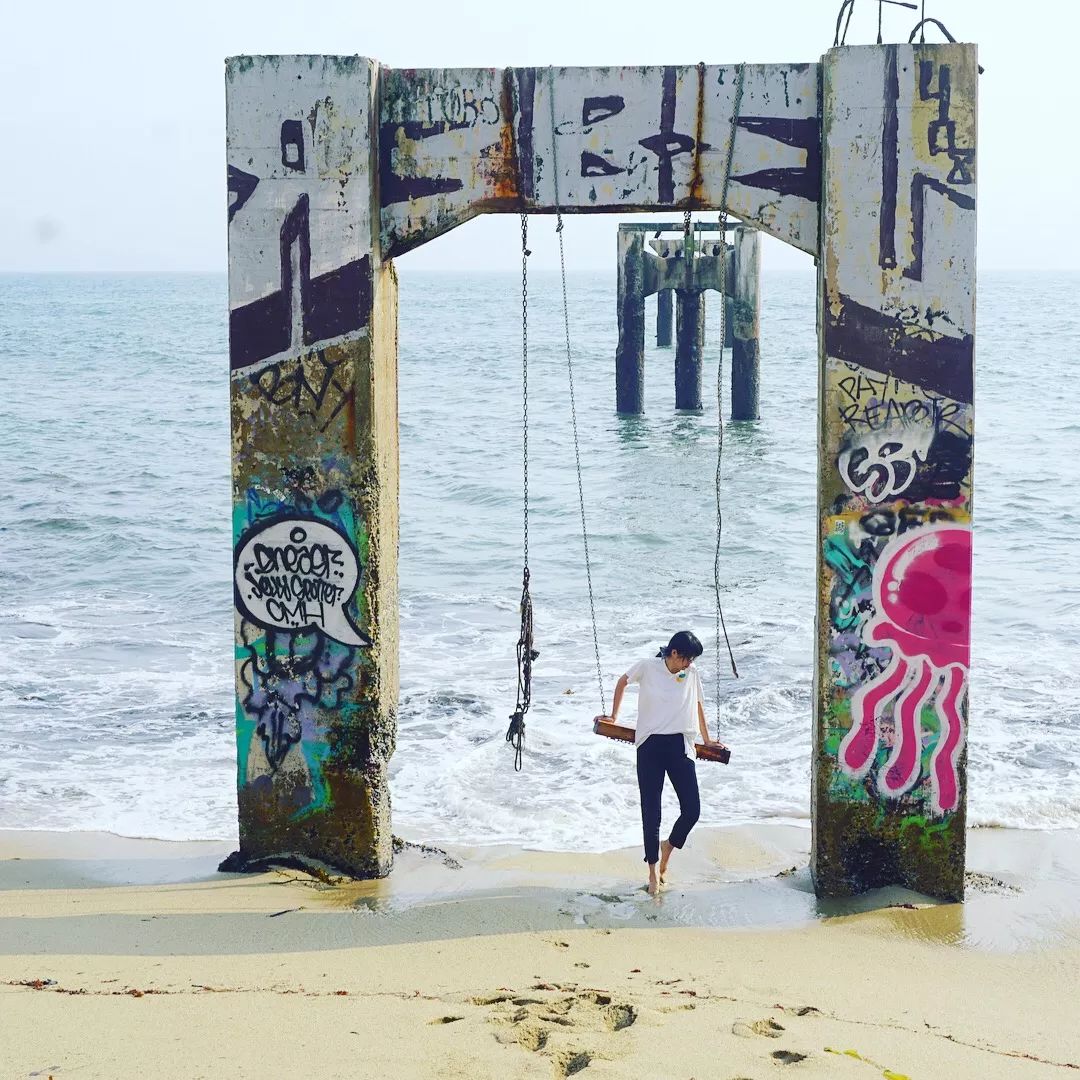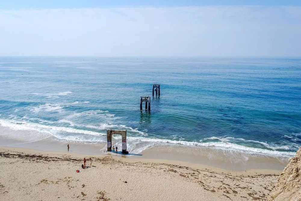 真的没想到能在美国看到如此壮美的景象!一个大石门伫立在沙滩上,铁链秋千悬挂其上,海浪急卷而来。