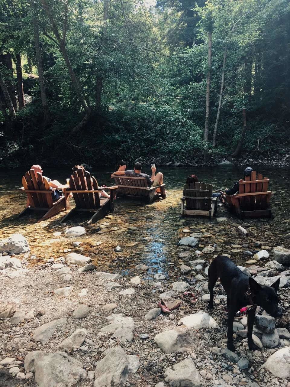 深受大人们喜爱的是喝着啤酒坐在溪水里聊天,还有狗子陪伴,这真是太惬意了。