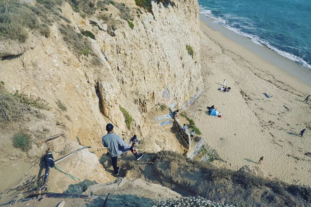 悬崖边来个脚的合影,海边确实有点冷哦!
