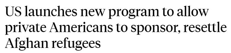 国务卿安东尼·布林肯(Antony Blinken)在一份声明中说,这项新计划“利用了这种支持,使个人能够直接参与到欢迎和融合我们新邻居的活动中来”,并且“展示了个人团结起来欢迎阿富汗人并将其融入美国社会可以发挥的强大作用,体现了我们的善意和慷慨精神。”