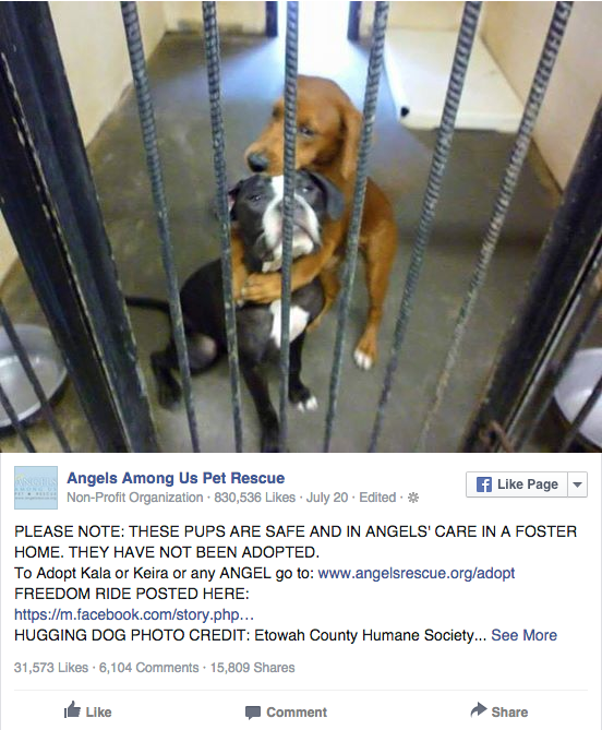 这一幕发生在美国亚特兰大的一间收容所里。 由于收容所爆满,根据规定将没有在期限内找被领养的狗狗,全部执行安乐死。 其中有一对狗狗姐妹,一个叫卡拉Kala,一个叫琪拉Keria。 它们同一天来到收容中心,却迟迟没有被领养。 毫无悬念,她们两的名字也同时出现在了安乐死名单上……