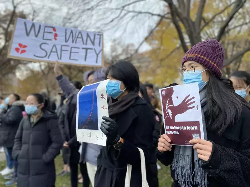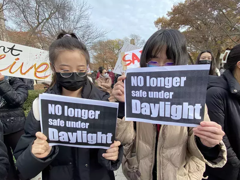 美国时间11月16日中午,由中国学生自发组织的“我们是来学习的,不是来死的”(We are here to learn, not to die)校园安全集会在芝加哥大学校园举行。