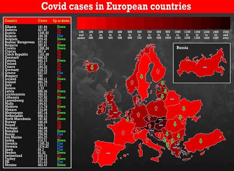 而与上面种种令人震惊的反封锁暴动相呼应的,是欧洲的疫情。
