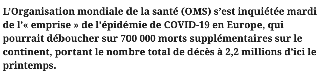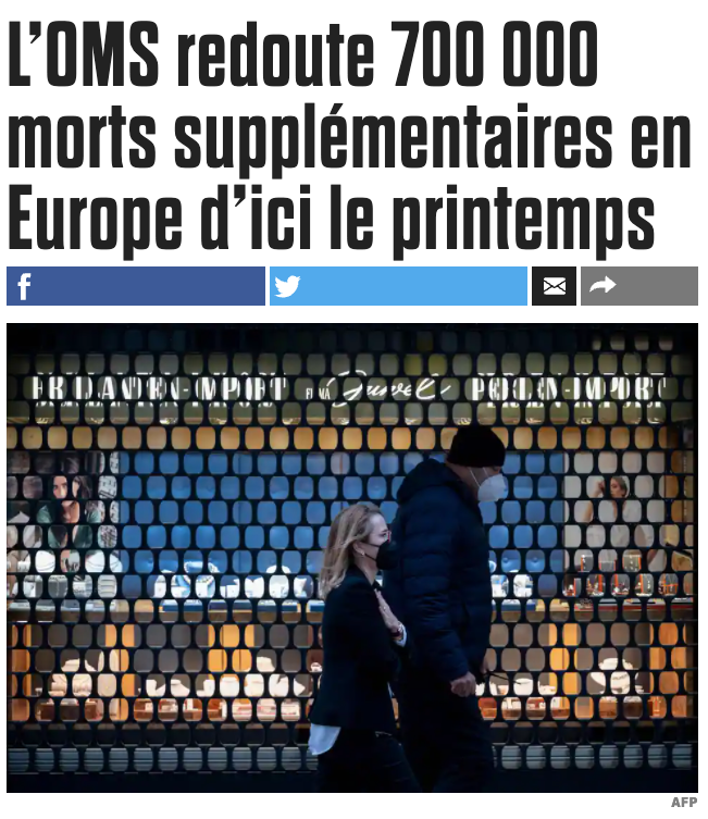 “除非在整个欧洲加强紧急防疫措施,否则到明年3月,可能还会有70万人死亡。”