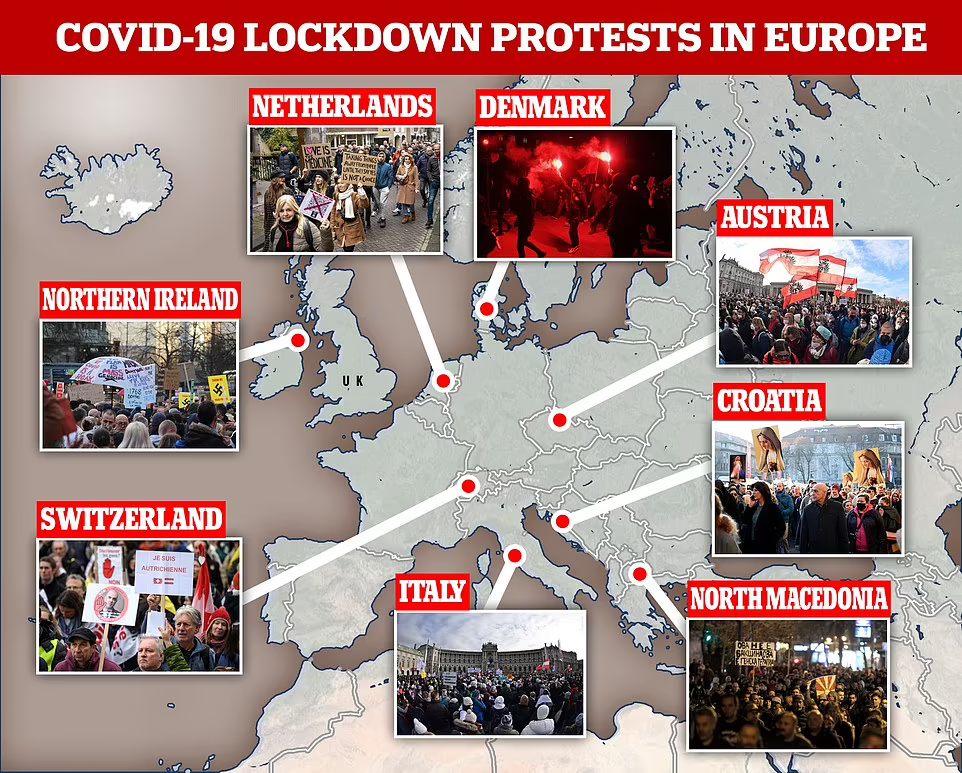 引爆示威抗议的无非就是各国针对疫情升温、加强了封锁措施,结果直接点燃了一批民众的怒火。