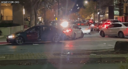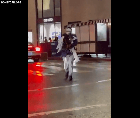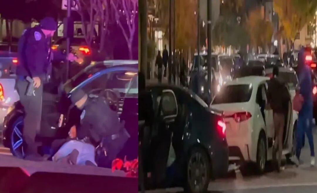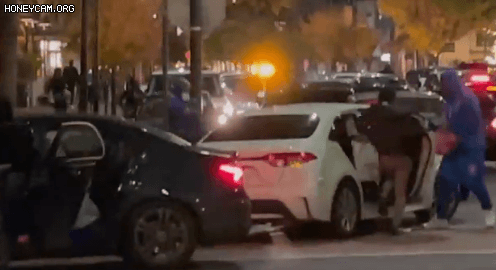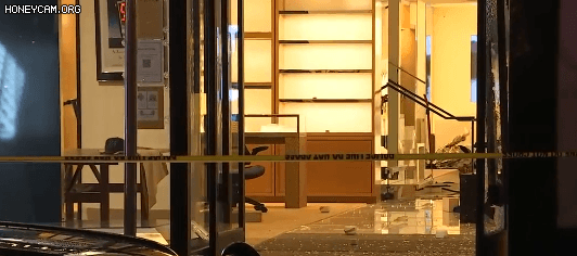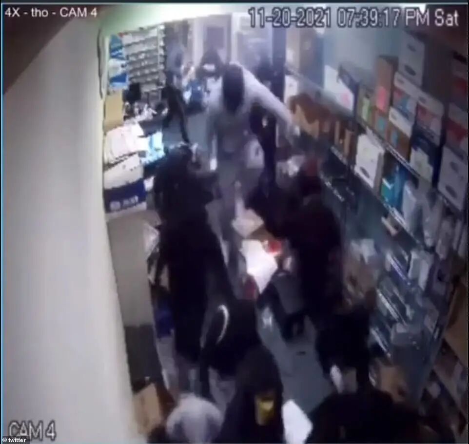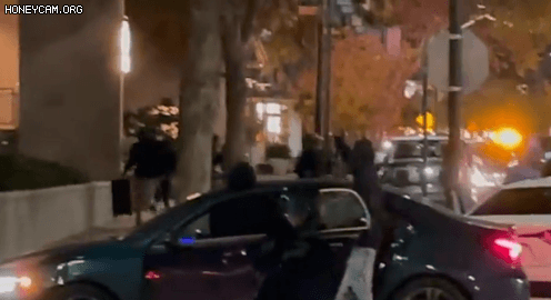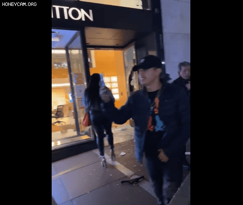 社交媒体上流传的视频显示了11月19日晚上发生的一些混乱且激烈的情况,视频显示商店的窗户被劫匪砸碎,随后警方冲向一辆试图逃跑的汽车,用警棍砸碎了车窗和挡风玻璃。