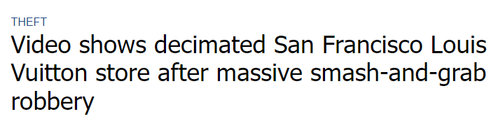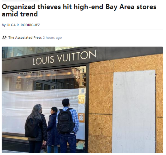 11月19日晚上,旧金山联合广场的一家路易威登(Louis Vuitton)商店和其他高端零售商遭到窃贼袭击,随后有6嫌疑人被捕。
