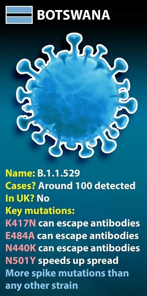 世界卫生组织表示,这个被称为B.1.1.529(Omicron)的变种在博茨瓦纳(Botswana)首次被发现,目前还不清楚这种新的变种究竟是在哪里产生的,但现在多个国家旅行者中出现。