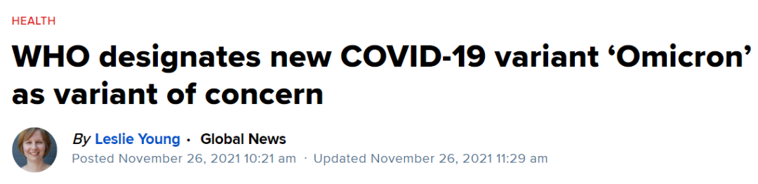 世界卫生组织(World Health Organization)在11月26日上午的一份声明中宣布,非洲南部惊现一种新的、可能更具传染性的新冠变种病毒正式名称为B.1.1.529(Omicron),并将其标记为“非常令人担忧的变种”。