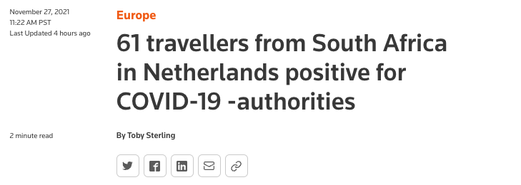 更让人害怕的是,除了这61人以外,同航班的500多人都已经进入荷兰甚至欧洲,而没人保证他们是否已经被传染或者正携带新变种满世界乱跑!