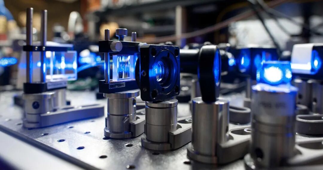 JILA的研究人员使用蓝色激光测量超冷原子气体对光的散射情况。(图片来源:C. Sanner/JILA)