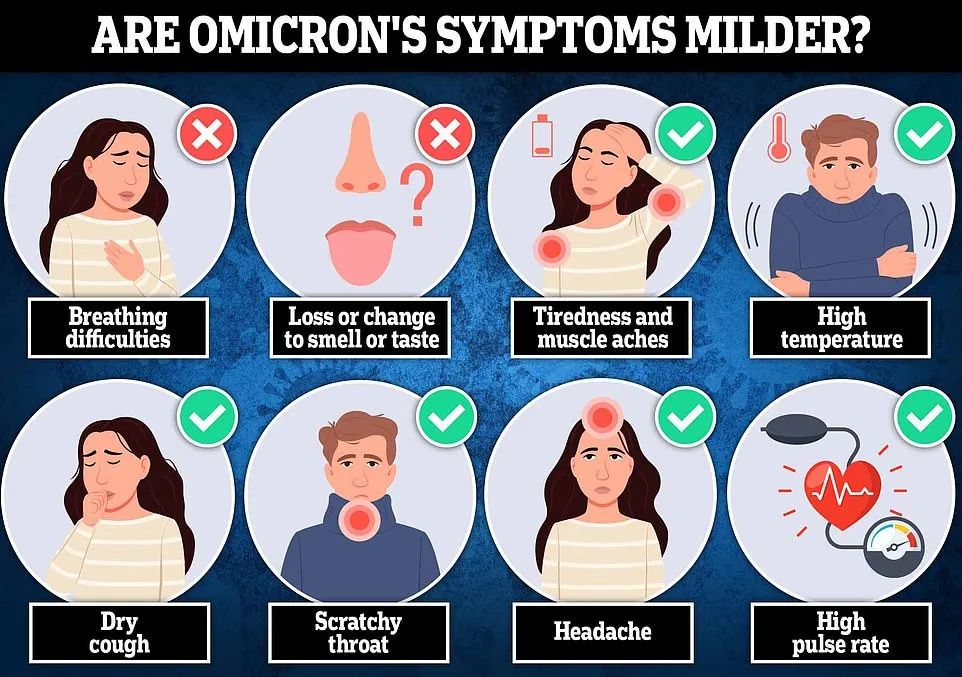 南非医学协会主席Angelique Coetzee博士是第一个在病人身上发现这种新变体的人,她说她的病人感染了Omicron后报告了不同的、但温和得多的症状。包括: