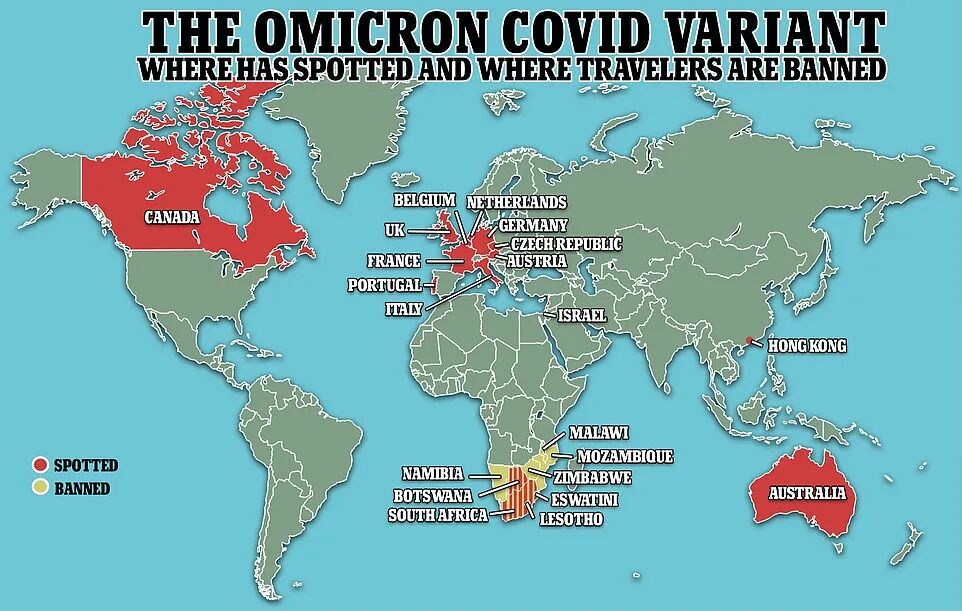 很快,除南非外,该变种已在加拿大、日本、比利时、澳大利亚、荷兰、丹麦、英国、德国、以色列、意大利、香港等多地发现。