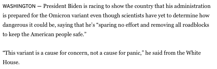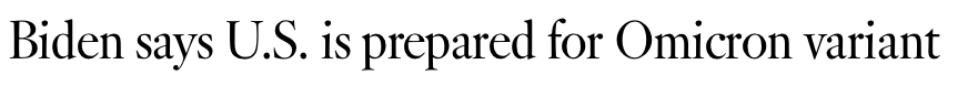 拜登总统11月29日在白宫表示,尽管科学家尚未确定Omicron变种有多危险,但他会“不遗余力地扫除所有障碍来保护美国人民的安全”。他说:这种变体令人担忧,但不要恐慌。