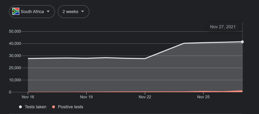 根据南非国家传染病研究所发布的数据,南非的新冠检测阳性率近日突然上升,从1%上升到近10%。新住院人数过去两周来“大幅上升”。但死亡率没有增加。