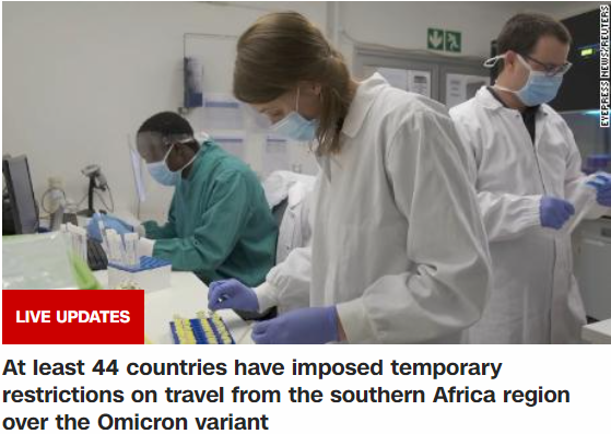 在周四宣布后的几个小时内,包括美国和英国在内的44个国家立马发布禁令,切断来自南非和周边非洲国家的旅行往来。
