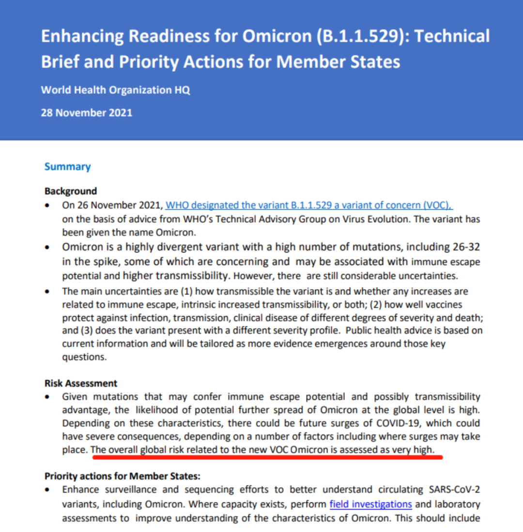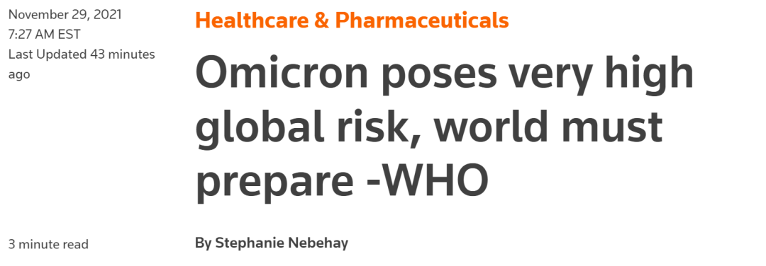 世卫组织:Omicron 全球总体风险评估为“非常高”!