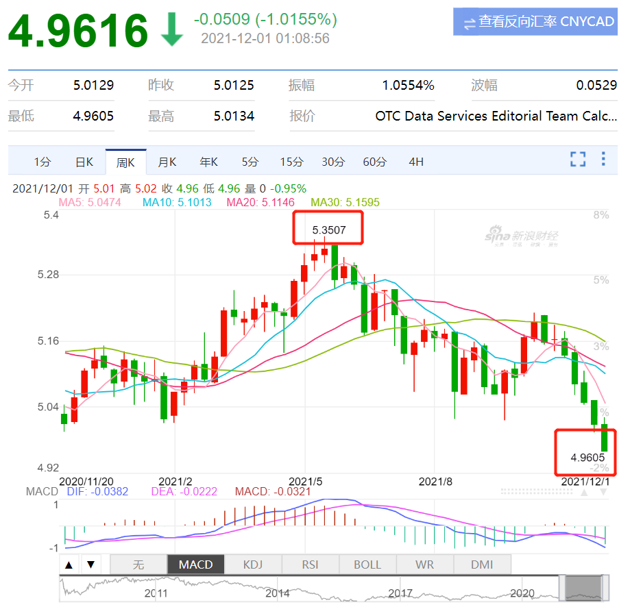 而就在今年5月,汇率还一度冲到了5.35的高峰,这意味着现在要换个1万刀,一瞬间则省了大几千人民币,这钱买什么不香!