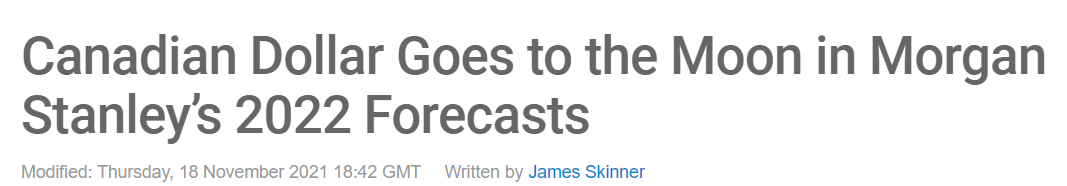 这意味,国际旅客会大增,对加币的需求也会相应增加。同时,加拿大央行的加息即将从明年开始实施,这也会对通货膨胀起到抑制作用,从而拉高加币汇率。根据近日Morgan Stanley的预测报告可以看出,“加币将在2022年达到巅峰,明年加元兑美元可能达到2014年以来的最高水平。”