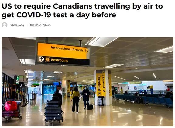 就在今天,美国白宫宣布——从下周开始,所有入境美国的加拿大和其他国家航空旅客,必须在飞机起飞前一天接受新冠病毒检测!无论有没有接种疫苗!